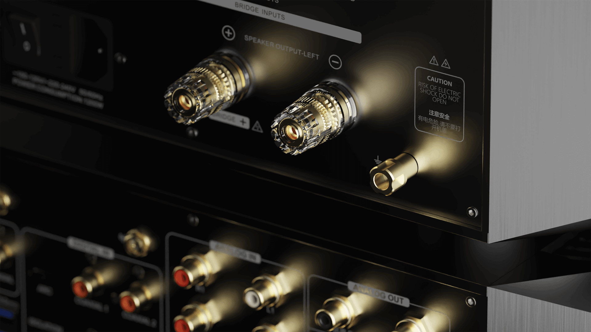 AMP-F10 оснащён независимым двухканальным линейным блоком питания на 1000 Вт, обеспечивая стабильное и мощное питание каждому каналу. Такое решение исключает взаимные помехи между каналами и позволяет добиться сбалансированной и мощной стереосцены. С большим запасом мощности низкие частоты становятся насыщенными, а средние и высокие — гладкими и богатыми, передавая полную палитру эмоций.
